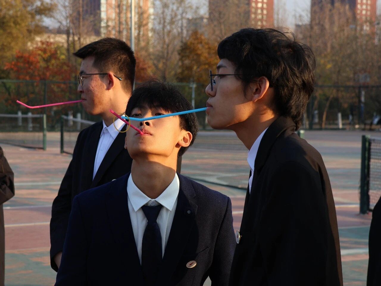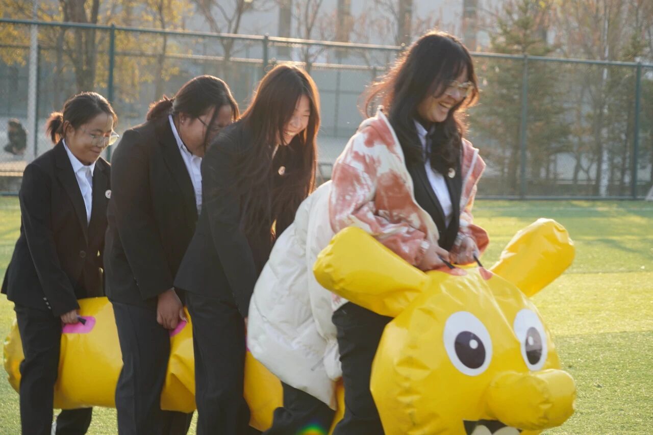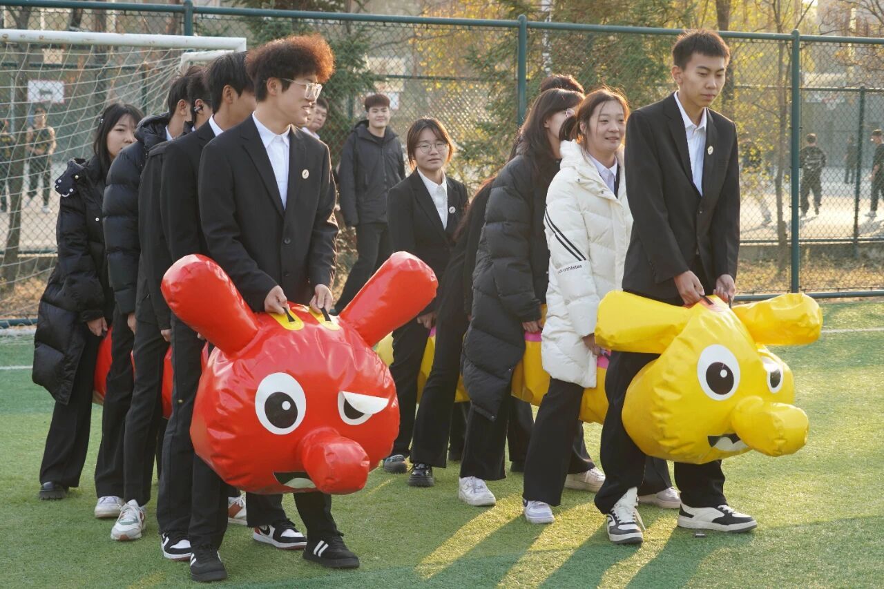 在老师们的组织下,学员们分别进行了“同心鼓”“吸管穿圈”“毛毛虫赛跑”等游戏。“同心鼓”游戏中,大家围成一圈,双手拉紧绳索,共同控制中间的鼓面,将黄色的大气球稳稳地弹起、落下;“吸管穿圈”游戏中,大家专注地将手中的圆环轻轻传递,每一次成功的交接都伴随着阵阵欢呼,让整个操场洋溢着青春的活力与热情;“毛毛虫赛跑”游戏中,团队默契配合,大家齐心协力、共克难关。现场充满了欢声笑语,学员们在轻松愉快的氛围中,不仅拉近了彼此的距离,更深刻体会到了团队协作的重要性。