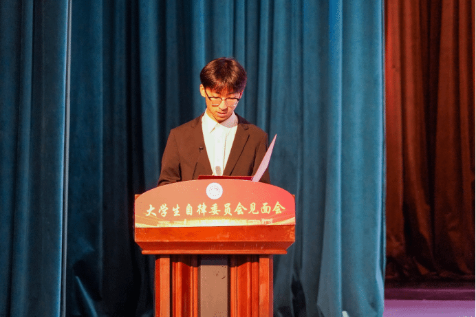 会上,第十二届大学生自律委员会执行主席陈勃含代表第十二届大学生自律委员会深情感谢学校全体学生干部的培养与付出,叮嘱下一届成员接过了服务师生的接力棒,在实际行动中坚守“先律己,再律人”的庄重承诺。