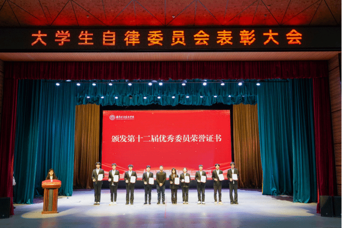 随后,与会领导老师颁发第十二届大学生自律委员会主席团聘书和优秀委员、优秀干事荣誉证书,表彰他们过去一年的辛勤付出与突出贡献,勉励他们继续发扬优良传统,服务学校大局。