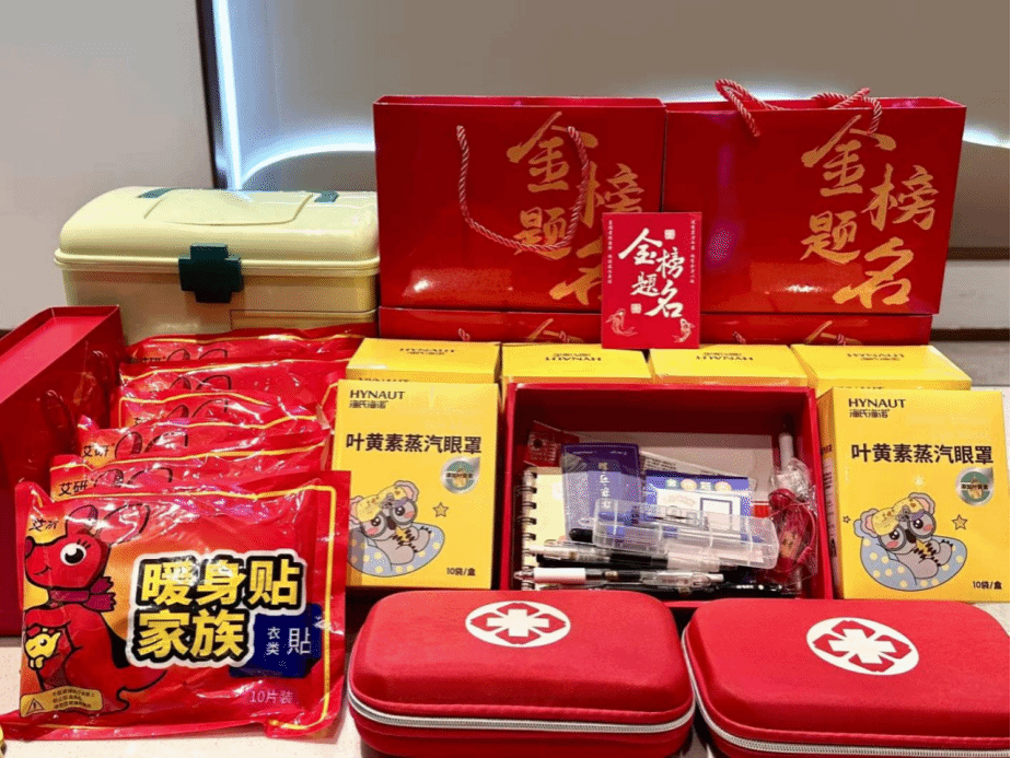 舒适补给品:足量饮用水、蒸汽眼罩、暖贴等按需取用,缓解备考疲劳,抵御冬日寒意;