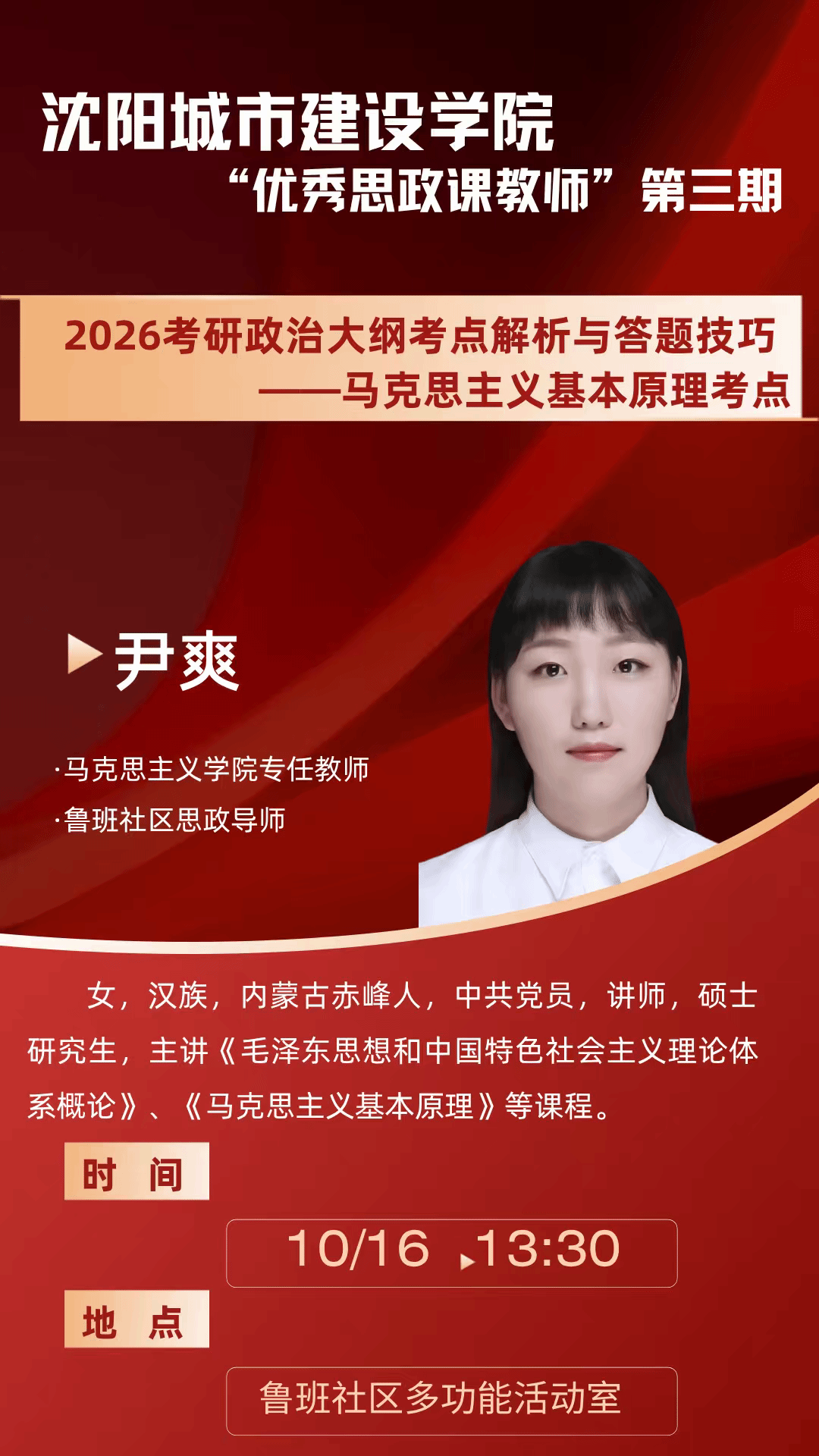 四进三联五到位| “一站式”学生社区“优秀思政课教师进社区”系列讲座第三讲预告