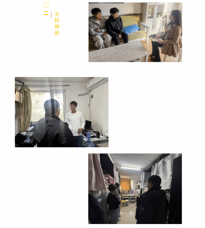 此次走访覆盖了不同年级、不同专业的学生宿舍,辅导员们重点关注学生思想动态、人际关系、学业困难、精准就业、升学等关键问题。走进宿舍,辅导员们与学生亲切交谈,以拉家常的方式打开学生心扉。对于思想上有困惑的学生,辅导员耐心倾听其烦恼,结合实际案例给予积极引导,帮助学生树立正确的价值观和人生观;对于升学方面有困惑的学生,辅导员耐心指导,结合实际情况给予帮助;对于学生在学习、生活中有需求的,辅导员耐心倾听并记录,反馈给相关单位部门进行解决。