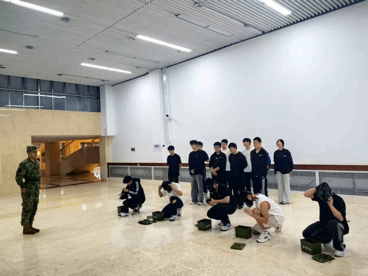 在核生化防护训练环节,重点组织了防毒面具快速穿戴练习。教官强调了在染毒环境下迅速有效进行个人防护的重要性,并分解演示了穿戴步骤。学员们严格按照“屏息、闭眼、戴面具、呼气”的程序反复操练,不断缩短穿戴时间,确保在模拟突发情况下能够迅速完成防护,有效增强了学员的自我防护意识和应急处置能力。