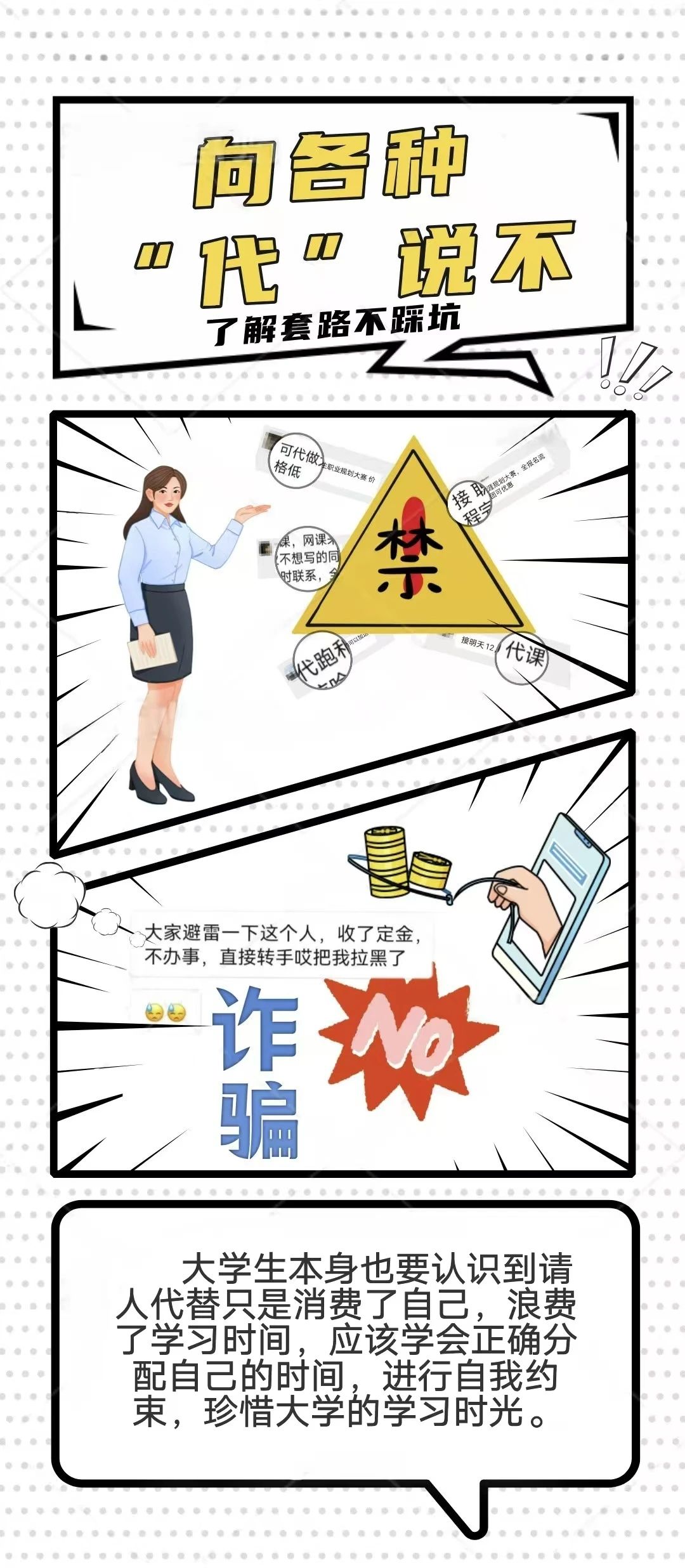 而在当代大学的校园中盛行着一种新的诈骗手段。代做作业、代刷课和代校园跑等现象也成为了新型诈骗的温床。在繁重的学业和校园活动压力下,部分同学为图一时之快,试图寻找这些所谓的“便捷服务”。然而,这些“代劳者”混杂着居心叵测之人,在收取不菲的费用后便消失得无影无踪。还有些不法分子利用非法软件进行代刷,轻则让学生的成绩直接作废,重则对学校的网络教学和管理系统造成严重的破坏。