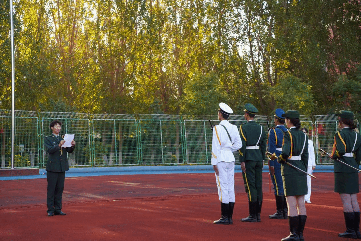 本次活动于清晨7时准时开始,三军仪仗队的学子们列队肃立。随着指挥员一声令下,仪仗队步伐沉重而坚定,红旗在微光中如血如炬。全场无声,唯脚步声叩击心灵——那是历史的回响,也是未来的警钟。