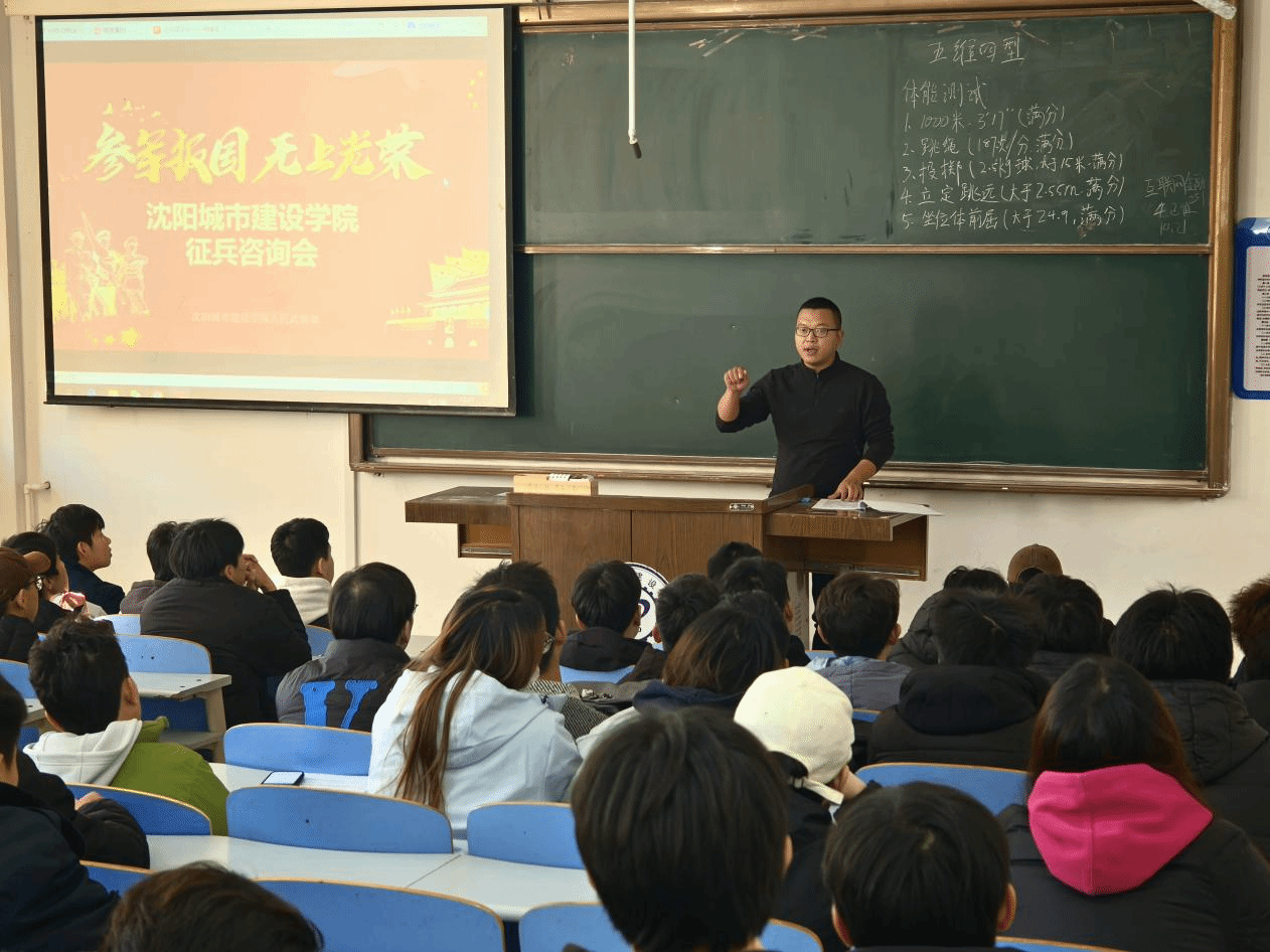 为深入贯彻落实国家征兵政策,扎实做好我校大学生征兵动员工作,激发广大适龄学子携笔从戎、报效国家的热情,沈阳城市建设学院人民武装部于10月21日在业精楼B104成功组织了2026年春季大学生征兵政策咨询会。本次咨询会旨在为我校有意向参军入伍的同学提供权威、精准的政策解读与咨询服务。