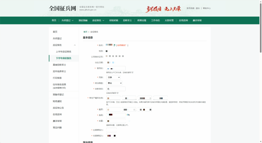 5.若没有进行过兵役登记,请填写兵役登记信息,认真核对无误后点击“参加2025年应征报名”;