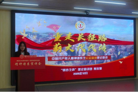 为进一步加强青年学生理想信念教育和思想道德建设,深入实施时代新人铸魂工程,充分发挥学生社区的育人阵地作用,夯实“四进三联五到位”工作机制,大力弘扬社会主义核心价值观,培养有理想、敢担当、能吃苦、肯奋斗的新时代青年学生,近日,“赓续红色精神谱系,砥砺奋进新征程”精神谱系宣讲会在图书馆学术报告厅举行。现代技术学院团委书记、学生工作办公室主任孟庆勇主持活动,学校“银杏之声”理论宣讲团成员及学生代表参加活动。