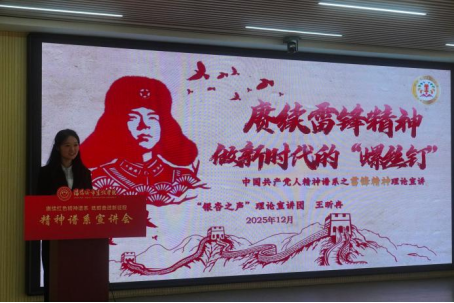 王昕冉同学以《赓续雷锋精神,争做新时代的“螺丝钉”》为题,以雷锋精神为主线,以唱响青春之歌为主旋律,生动诠释了雷锋精神的内涵本质、时代价值和实践路径,她号召当代大学生以雷锋同志为榜样,在课堂上勤学苦练,在实践中锤炼本领,在每一份任务中倾注热爱与专注,把敬业精神融入青春的每一个瞬间。